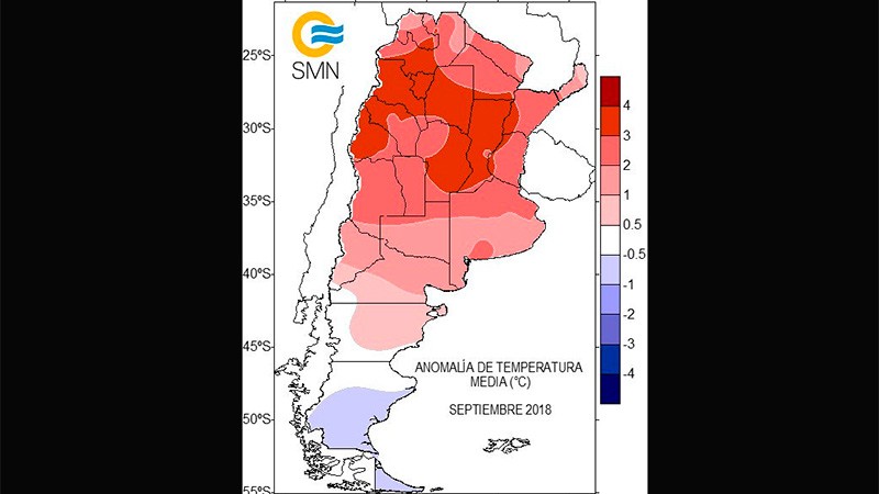 Con temperatura promedio de 17,4 grados, el mes pasado superó por 1,8 ° la media habitual para ese período. Según el Servicio Meteorológico, las registros más altos se dieron en Santa Fe, Córdoba, Santiago del Estero, Catamarca, La Rioja, Tucumán, San Juan y el extremo oeste de Entre Ríos, con media de 3 a 4 grados por encima de la normal.