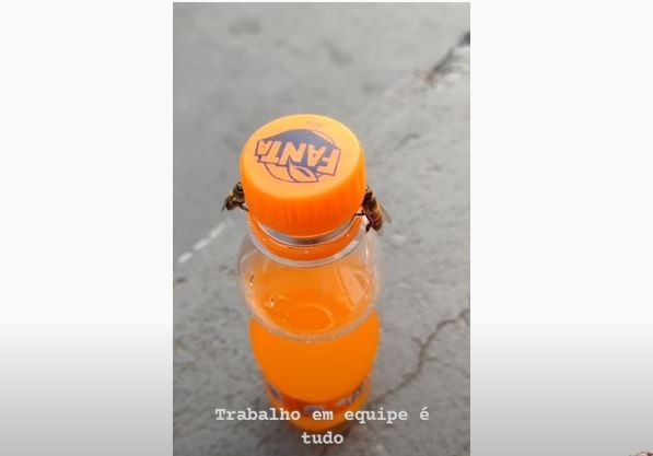 Una usuaria de Caraguatatuba (S�o Paulo, Brasil) compartió recientemente un video que muestra cómo dos abejas le 'roban' su refresco durante su hora del almuerzo.