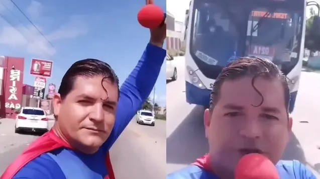 Superman brasileño quiso frenar un colectivo con su propia mano