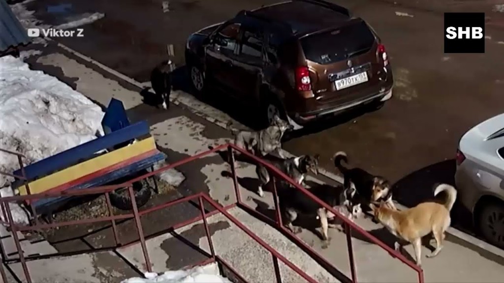 El video se volvió viral unos minutos después de que se publicara en las redes sociales. Allí se ve la increíble disputa entre un gato bravísimo y siete perros grandes. Fue captado por una cámara de seguridad en una calle de Rusia.