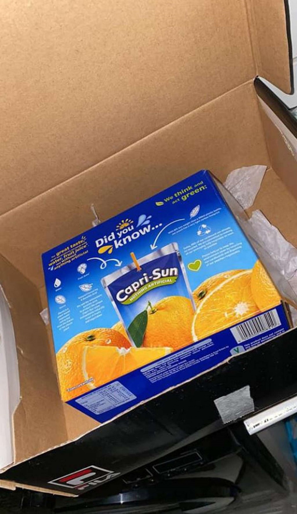 En su casa preparó un nuevo pedido para la dirección a la que había sido enviada la comida a la cadena de pollo frito. En una caja de jugo de naranja, guardó caca de perro. Después puso eso dentro de una caja de zapatillas con una nota: “Espero que hayas disfrutado del Uber Eats que te invité”.