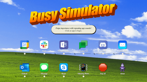 Busy Simulator es una práctica herramienta que reproduce aleatoriamente pings de notificación falsos de aplicaciones como Slack, Discord, Google Chat, etc, gracias a los cuales los usuarios pueden fingir que han recibido un mensaje muy importante, y que deben marcharse.