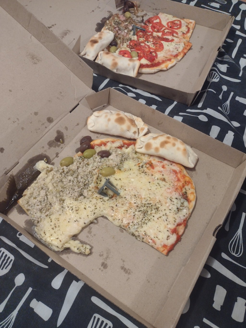 #pizzasenrosario Pedimos a Gran vía https://t.co/vaXxzCJnKc y nos llegó el pedido así.Una porción menos en cada caja. Reclamamos y la telefonista nos dijo tal vez las porciones restantes se las comió el cadete! #rosarionoloentenderias