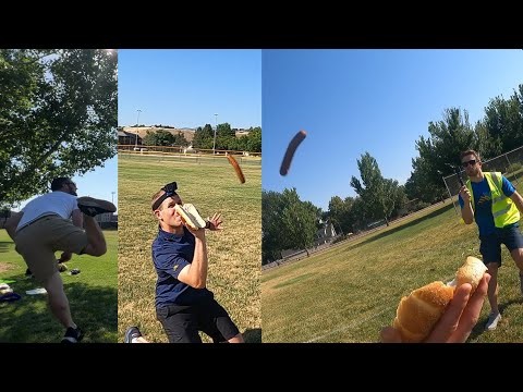 Pero hay un Récord Mundial Guinness aún más ridículo que comer panchos: consiste en lanzar una salchicha desde una gran distancia y capturarla dentro del pan. Es una mezcla de panchos y béisbol, donde la salchicha es la pelota y el pan de panchos es el guante.