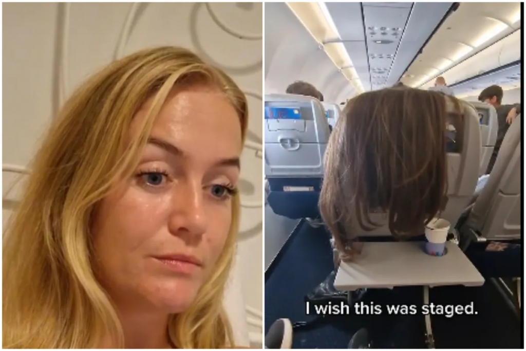 Una mujer filmó en un avión como una pasajera apoyaba su pelo sobre la mesa de su asiento