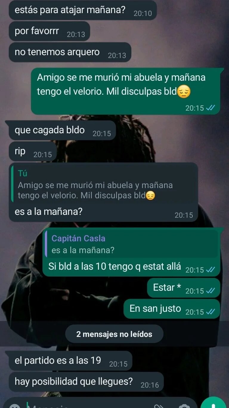 Joven avisó que no podía jugar Futbol 5 porque se murió su abuela pero su amigo le pregunta a qué hora es el velorio para ver si llega