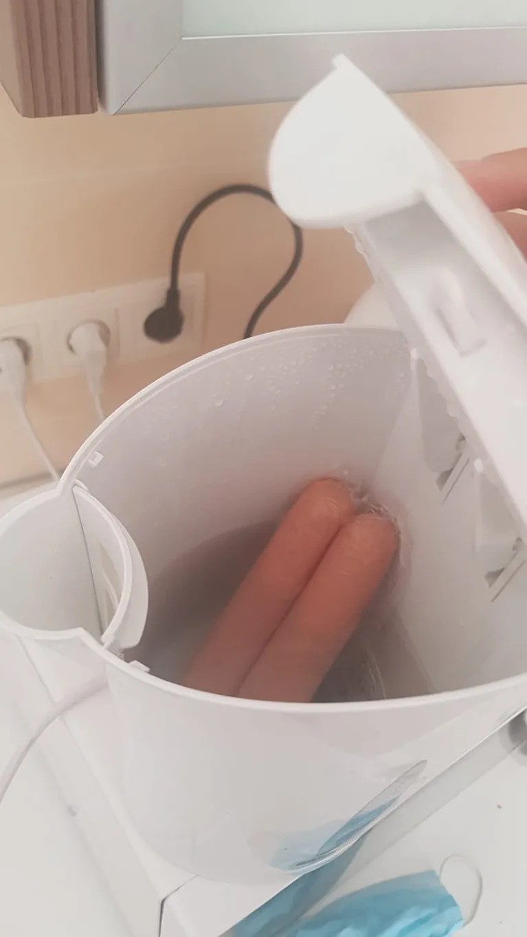 Mujer encuentra salchichas en pava eléctrica después de varios días de uso