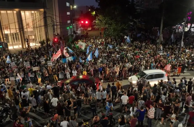 Cerca de las 20 hs, un conjunto de personas se concentró en la intersección con Pedro Vittori. Diversos sectores llamaron a la convocatoria frente a las medidas anunciadas por el presidente.
