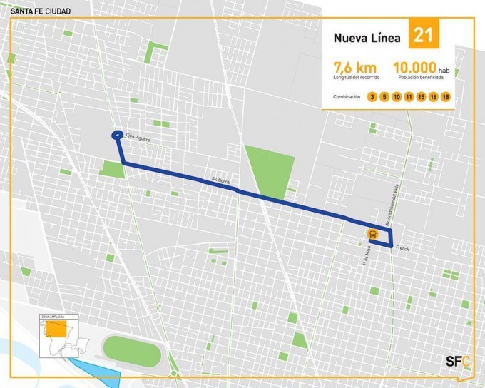 Desde esta semana, el sistema de transporte público suma un nuevo recorrido en el norte de la ciudad. Con 8 kilómetros de cobertura, la línea 21 brinda su servicio transitando por Avenida Gorriti, entre Avenida Aristóbulo del Valle y Avenida Blas Parera.