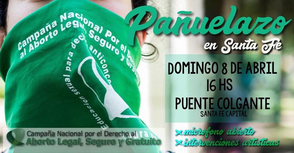Pasado mañana, la filial Santa Fe de la Campaña Nacional por el derecho al Aborto legal seguro y gratuito, convoca a concentrarse desde las 16:30, en el Puente Colgante. El Pañuelazo tiene lugar pensando en que el martes inicia el debate por la aprobación del proyecto de ese colectivo por la Ley de Interrupción Voluntaria del Embarazo.