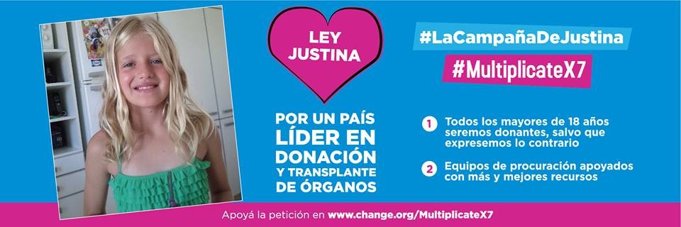 El 30 de mayo, asociaciones y ciudadanos se concentrarán desde las 13 en Plaza Congreso, para pedir al Senado nacional el tratamiento y pronta aprobación de las modificaciones en la ley existente, en relación a la donación universal y el acceso al trabajo digno de las personas trasplantadas. Ya cuenta con la firma de 60 legisladores el proyecto que lleva el nombre de Justina, la niña de 12 años que falleció a la espera de un corazón y que había pedido a sus padres ayudar a todos los que estaban en su misma situación. En la actualidad, existen más de 11 mil personas que aguardan por un trasplante.