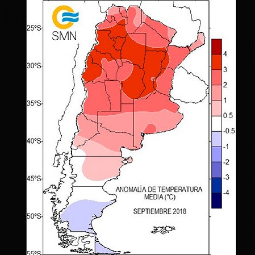 Con temperatura promedio de 17,4 grados, el mes pasado superó por 1,8 ° la media habitual para ese período. Según el Servicio Meteorológico, las registros más altos se dieron en Santa Fe, Córdoba, Santiago del Estero, Catamarca, La Rioja, Tucumán, San Juan y el extremo oeste de Entre Ríos, con media de 3 a 4 grados por encima de la normal.