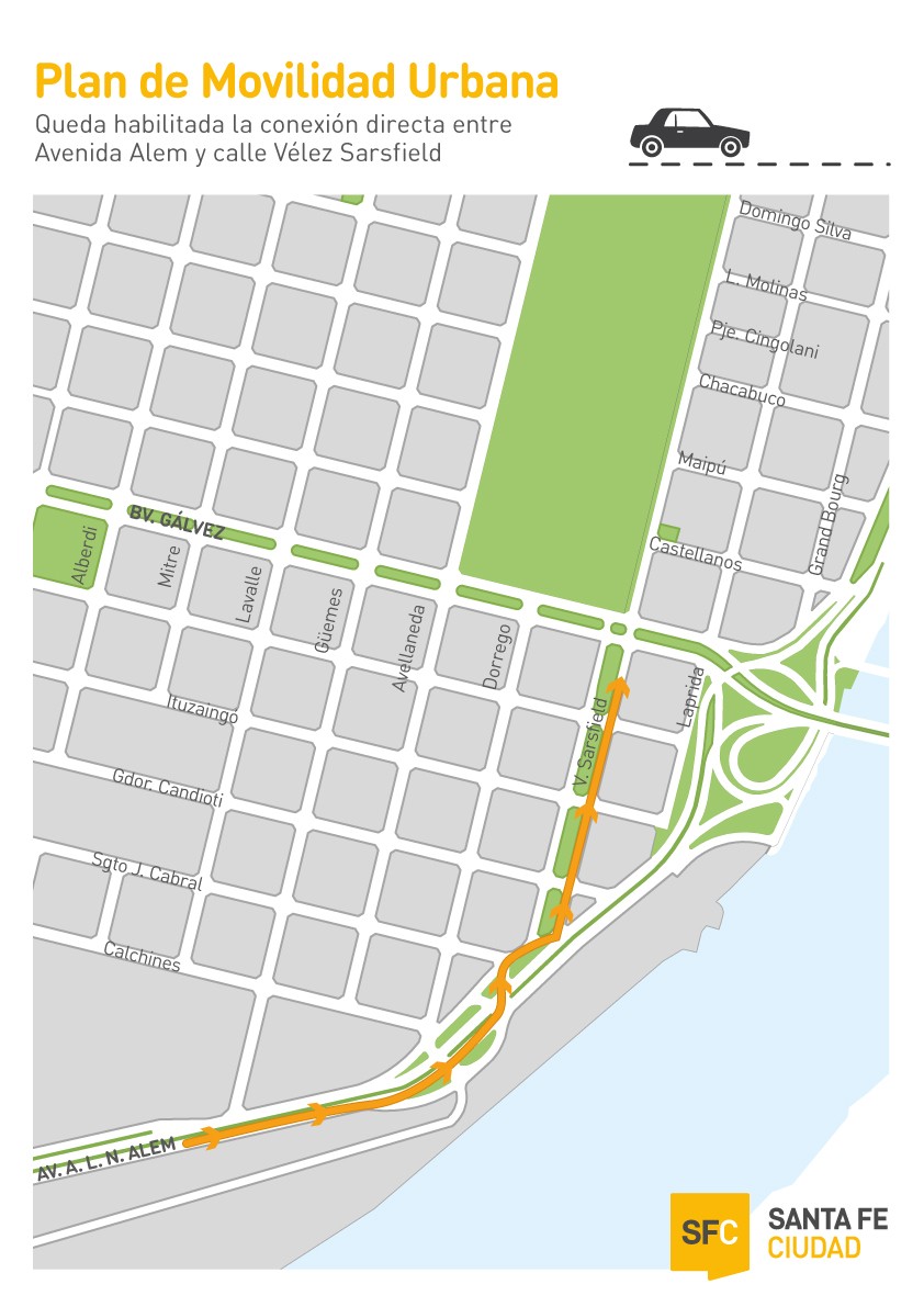 Desde mañana, los conductores pueden ingresar desde la avenida, a la calle cuyo sentido se dirige hacia Boulevard Gálvez. Además, la nueva conexión permite la unión de la futura ciclovía de Alem con la existente en Vélez Sarsfield.
