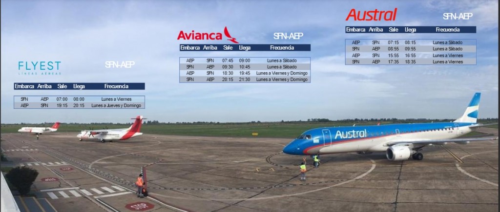 Desde el 7 noviembre, Flyest Líneas Aéreas viajará desde nuestra ciudad hacia Capital Federal, de lunes a viernes, con salida a las 7.00 y llegada a las 8.00 de la mañana. Y de domingo a jueves, el trayecto inverso partirá desde Buenos Aires a las 19:15, con arribo a la capital santafesina una hora más tarde.