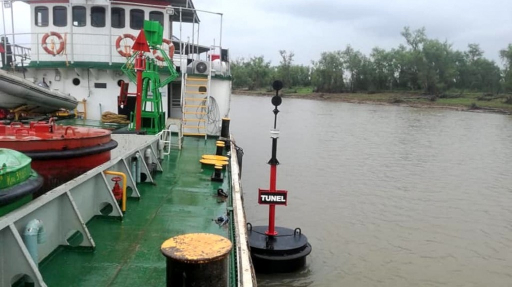 Por la pronunciada bajante del río Paraná, trabajadores del viaducto interprovincial colocaron señalizaciones para indicar la presencia del objeto que recubre el enlace. Precisamente, el balizamiento de la manta geotextil del Túnel se realizaba para evitar inconvenientes al momento de navegar por esa zona.