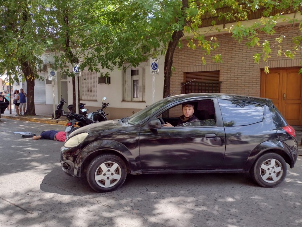 Cerca de las 13.30 de este mediodía se produjo un brutal hecho de violencia entre dos hombres en pleno centro de la ciudad de Luján, provincia de Buenos Aires. Un joven que se trasladaba en Ford Ka negro abordó a otro hombre un poco mayor de edad que circulaba en moto reclamándole que le devuelva un supuesto dinero que le adeudaba desde hacía varios años.
