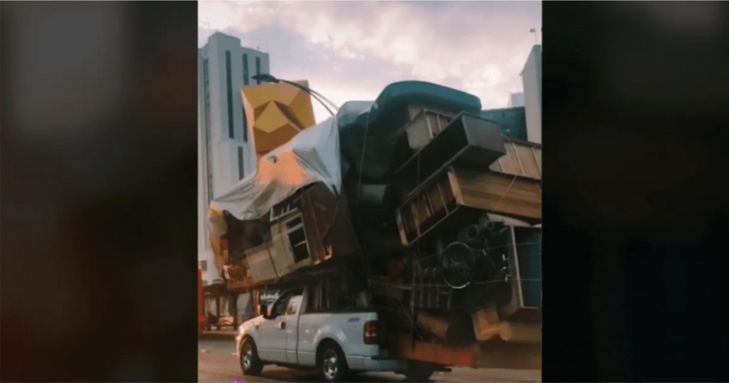 Si bien Ford destaca la potencia que tienen sus pick-ups, como lo es en este caso el modelo F-150, está fuera de las recomendaciones lo que hizo este hombre. Excedió los límites de carga, colocando muebles hasta en el techo.
