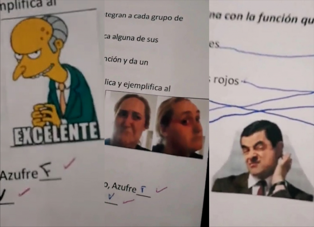 La idea, cuenta, la tomó prestada de otro profesor que ya había compartido en la misma red las intervenciones que hizo en planos e inmediatamente pensó en subirse a la misma frecuencia docente poniendo un poco más. “Busqué los memes más conocidos y representativos, los pegué uno por uno en un Word y armé una planilla, los mandé a imprimir y recorté; luego de tener todas las evaluaciones corregidas me fijé cuál coincidía con lo que debía remarcar o con lo que quería decir y allí los puse”, explica.