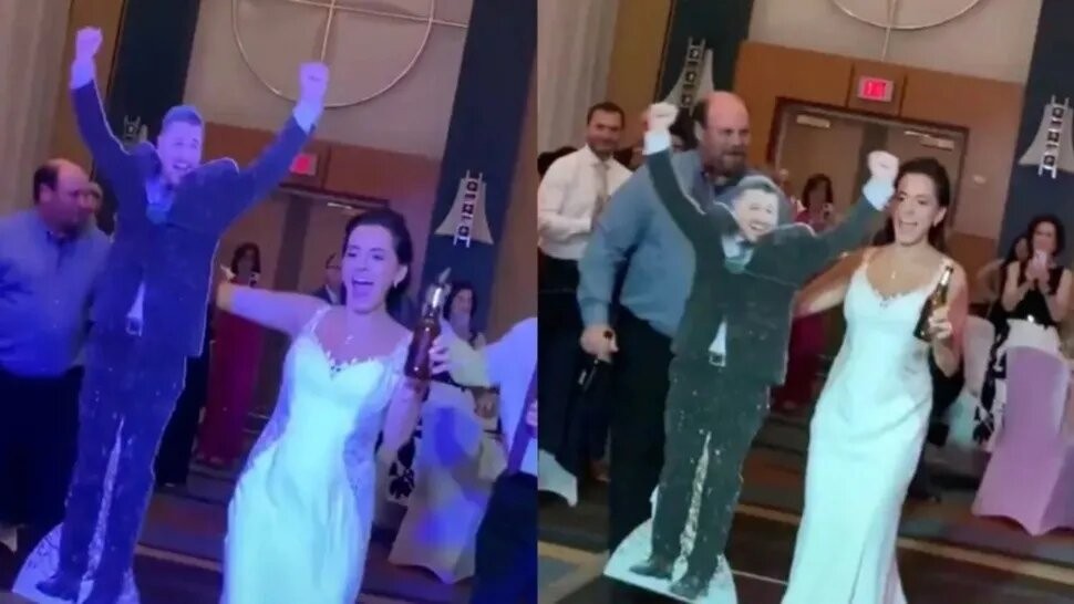 Una mujer decidió hacer su fiesta de casamiento con la figura de cartón de su novio