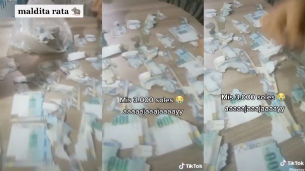 Esta mujer peruana tenía reservados 3.000 soles peruanos (750 euros al cambio) cuando, al ir a buscarlos, se encontró con la peor de las sorpresas. Según se puede ver en el vídeo que ha colgado en TikTok, la rata había roído y destrozado todos y cada uno de los billetes que había dentro de la caja.