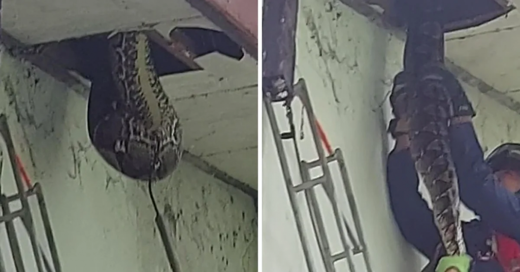 Bomberos sacaron una serpiente del techo de una casa en Indonesia