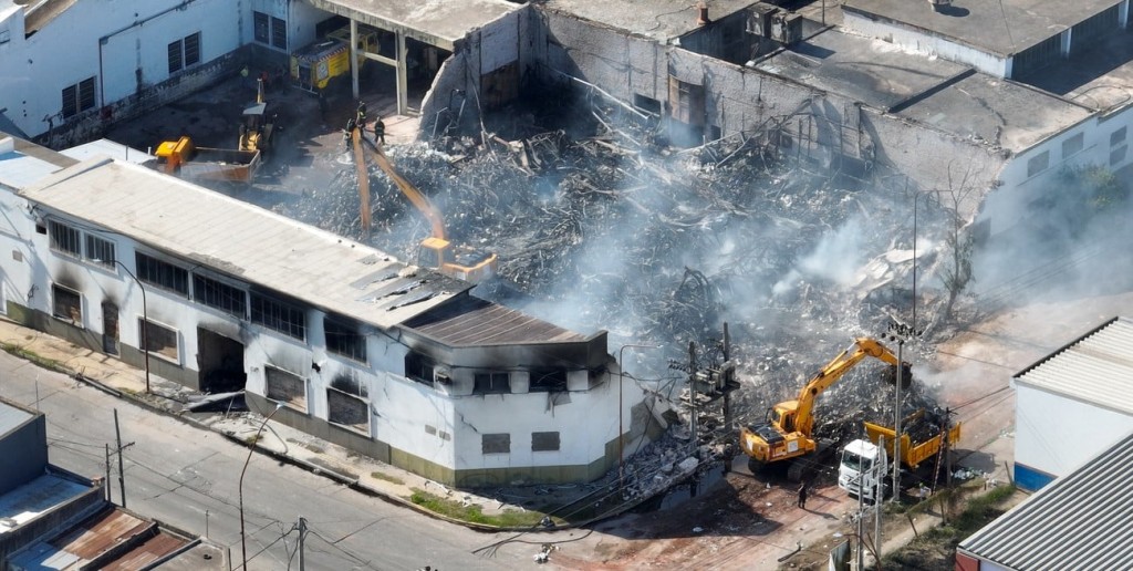 Aún se remueven los escombros y se apagan los pequeños incendios que se producen en los elementos inflamables. Trabajaron durante toda la noche.
