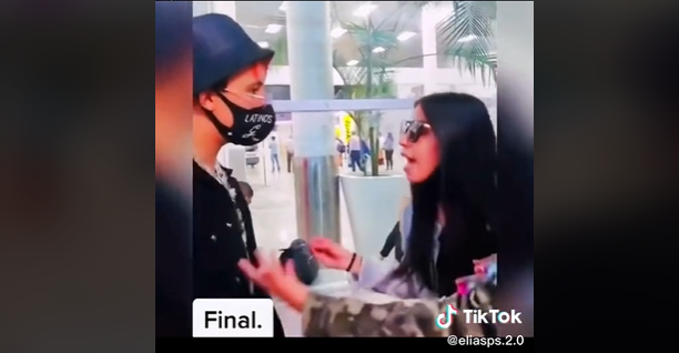 La joven mexicana se acerca muy enamorada a uno de los chicos, mientras que el otro filma el momento con gran desilusión.