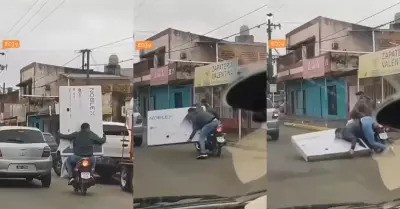 Televisor se cae cuando era llevado en una moto