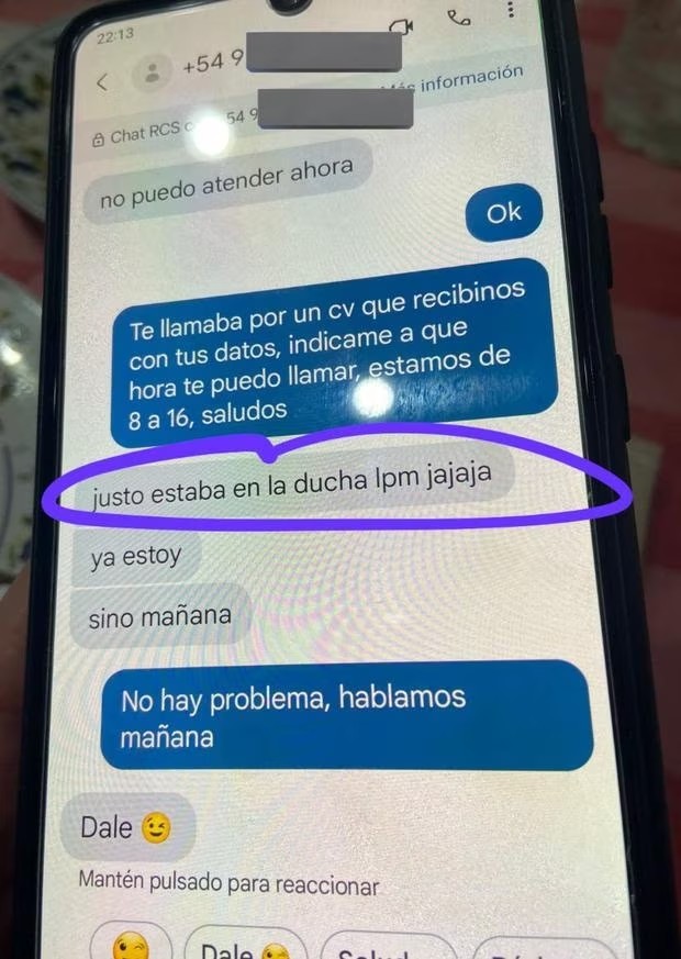 Joven respondió que no pudo atender llamado por trabajo porque estaba en la ducha "lpm"