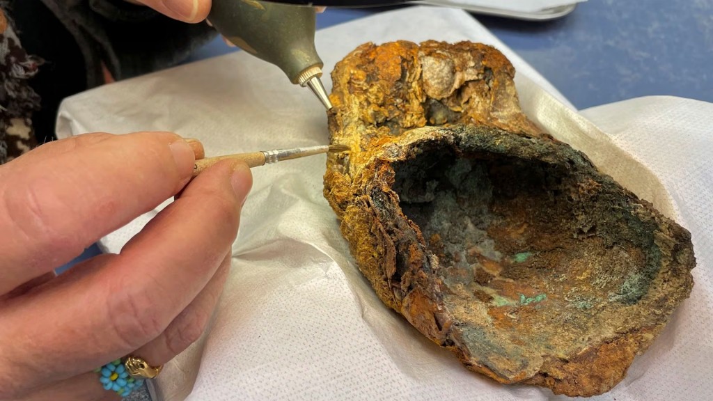 Los restos de la mano son réplicas huecas de cuatro dedos, fabricadas con hierro y metal no férreo.
