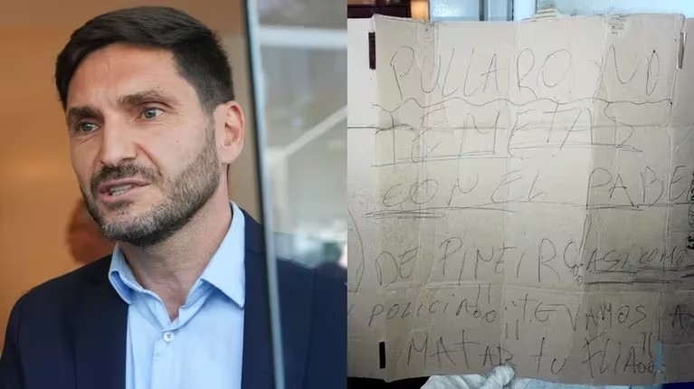 Dos sicarios dispararon contra el frente de la sucursal de la esquina de Ovidio Lagos y Saavedra. El cartel decía: “Pullaro, no te metas con el pabellón 9. Así como matamos a un policía, vamos a matar a tu familia”.