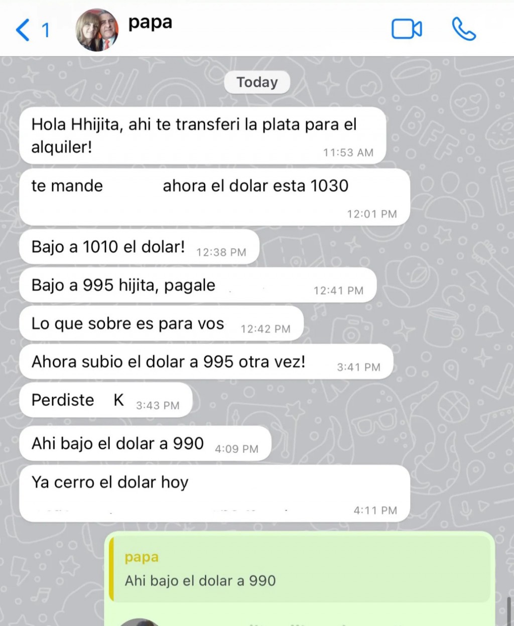 Padre asesora a su hija con el dólar para pagar el alquiler