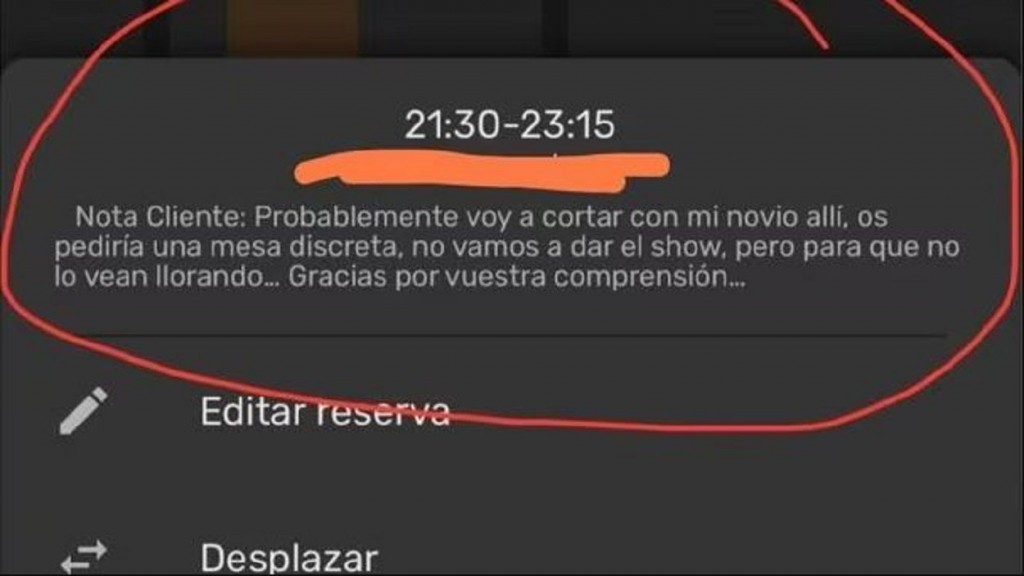 Un restaurante de España, recibió el mensaje para reservar una mesa donde se iba a dar un corte de relación.