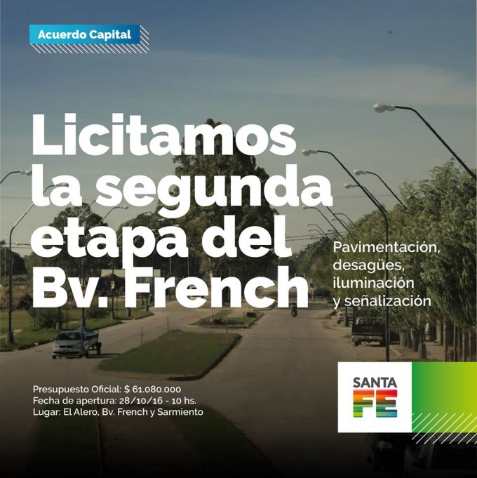 A las 10, el ministro de Gobierno y Reforma del Estado, Pablo Farías, encabeza la apertura de sobres con las ofertas económicas para tareas de pavimentación, desagües y obras complementarias de la arteria del norte de la ciudad. Presupuestadas en más de 61 millones de pesos, los trabajos sobre Boulevard French tienen un plazo de ejecución de 12 meses.