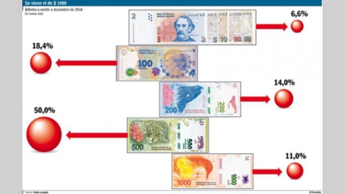 Para el último trimestre del año, el banco Central lanzaría el billete de $ 1000 con la figura del hornero. También para esa época, empezarían a estar disponibles la moneda de $ 5 y el nuevo billete de $ 20 con la figura del guanaco. Y el año próximo, saldrá la moneda de $ 10.