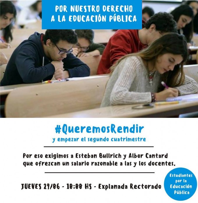 Este jueves a las 10 horas, agrupaciones estudiantiles se concentran frente al rectorado de la UNL para solicitar la recomposición salarial de los docentes. Precisamente, los estudiantes piden a autoridades nacionales la concreción de un acuerdo paritario razonable, para impedir la decisión de los profesores de no tomar exámenes en julio y de no dar inicio al segundo cuatrimestre.